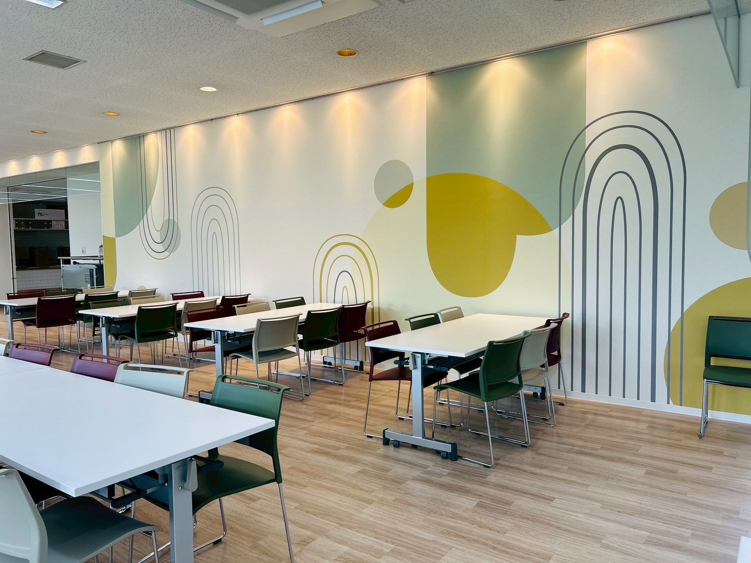 学生さんからの支持もあり、北欧カフェのようなイメージで壁面をデザインしました。