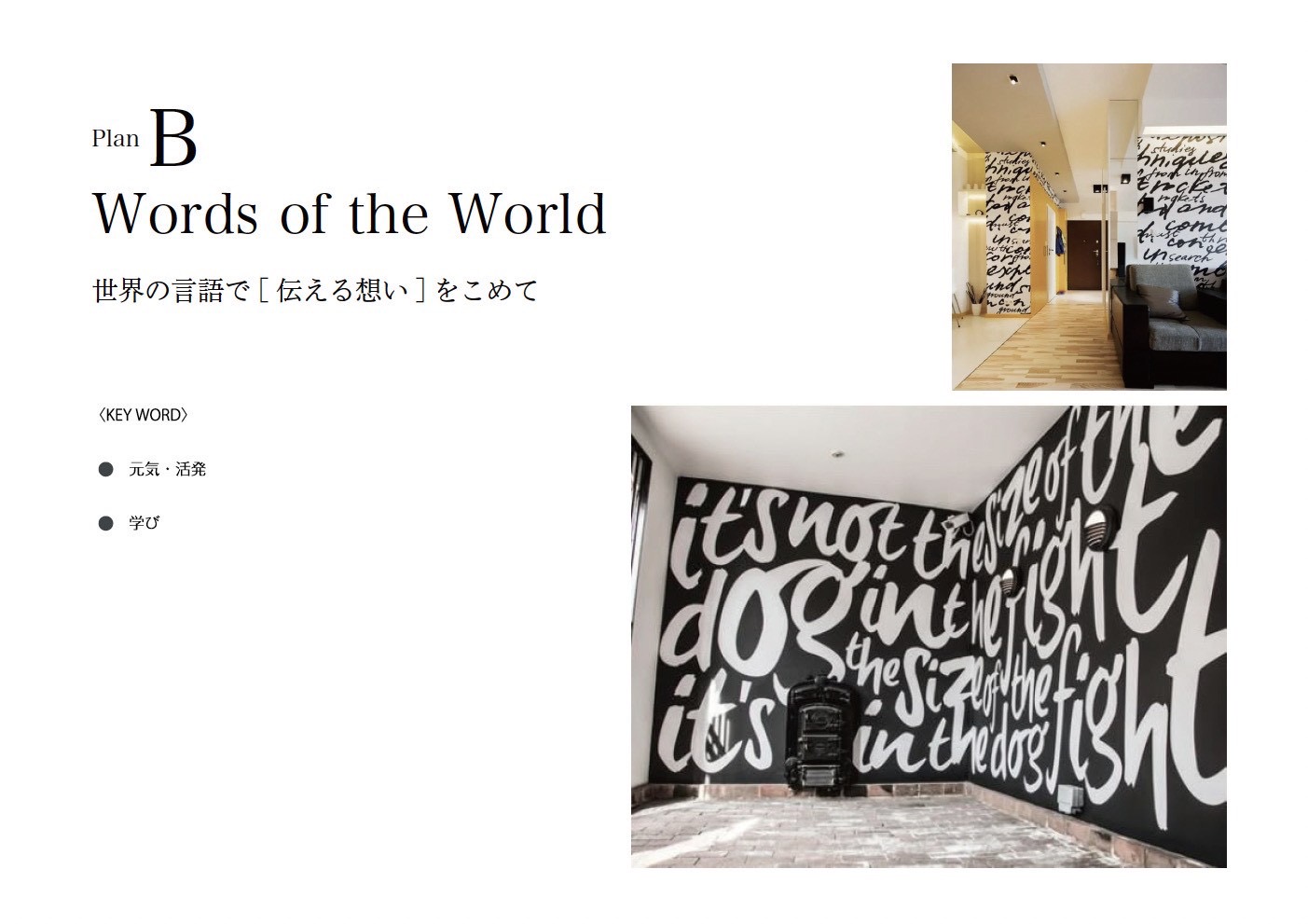 世界の言語で[伝える想い]をこめて元気な学生達が集う空間をプランしてみました。