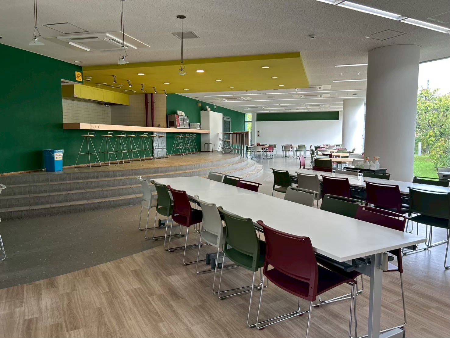 去年の4月に、大学食堂の内装提案&施工させていただきました。食堂といえば、ご飯を食べるだけでなく、友達と課題を行ったり、窓を眺めてぼーっとしたり、他の学部生の様子を見たり…